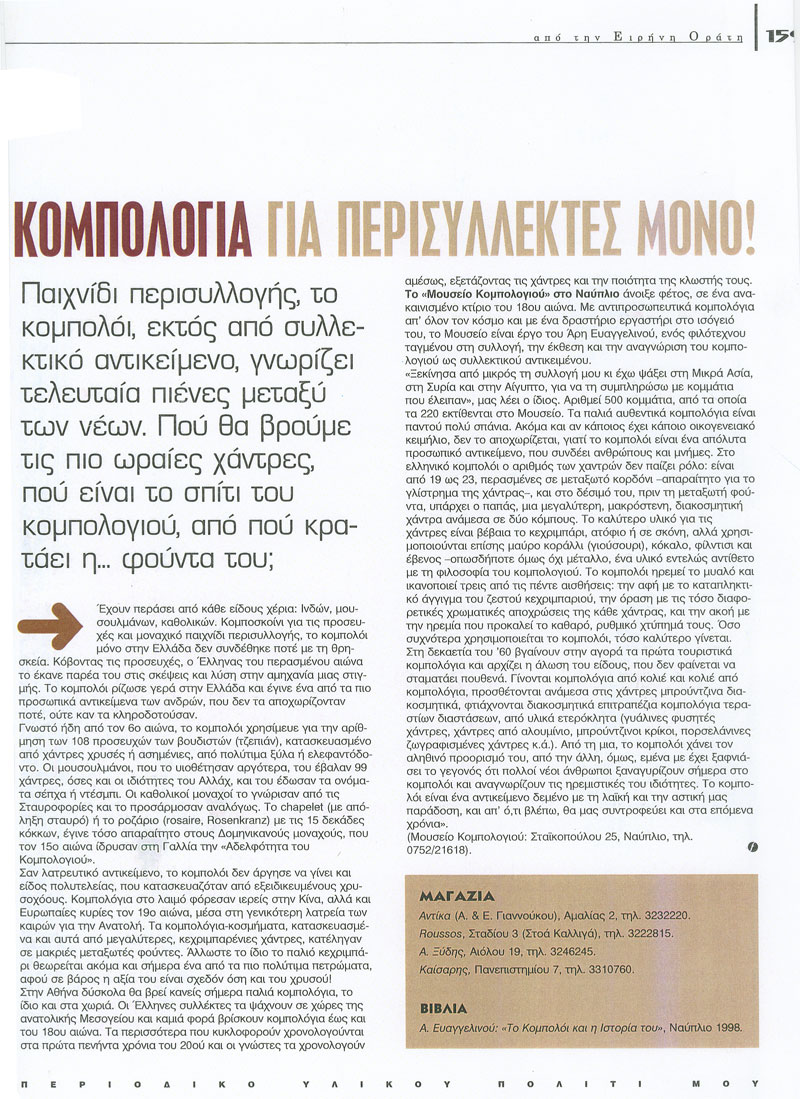Ο Τυπος γραφει για το Μουσειου Κομπολογιου